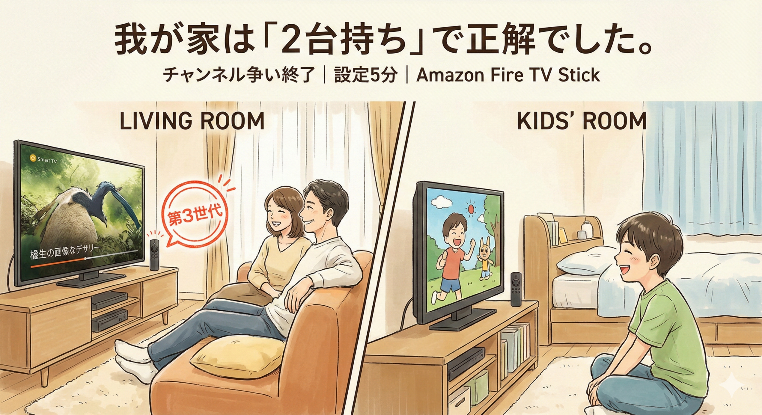 正直、画質にこだわりが強くて「どうしても4Kの超大画面で観たい!」というこだわりがなければ、今のテレビ+Fire TV Stickという組み合わせが、最も賢い選択だと感じています。