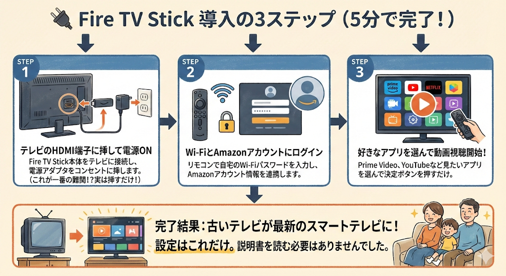 スマホが使えるなら、Fire TV Stickは必ず使いこなせます。