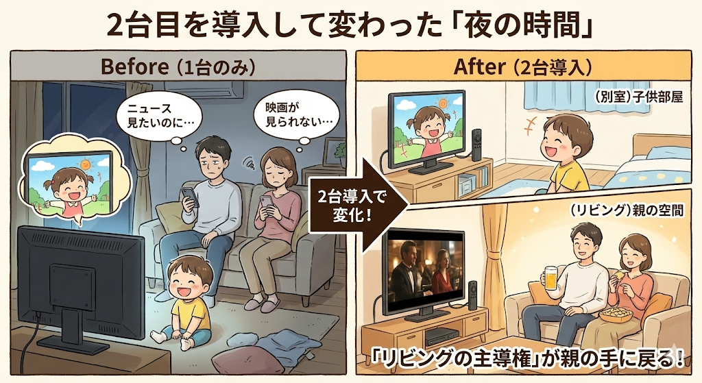 このようにメリハリをつけることで、子供は「自分のテレビがある!」と喜び、親は「管理できている」という安心感を得られます。