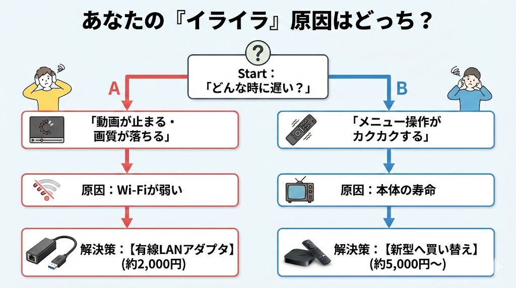 有線LANにしてもメニュー画面の動作が重い、リモコンの反応が悪い……。