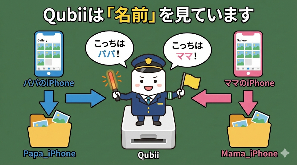 今回は、実際に我が家で実践している「Qubii 1台シェア術」と、写真がごちゃ混ぜにならないための「たった1つの重要な設定」について解説します。