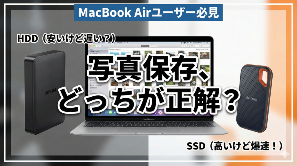 【MacBook Air】写真保存は外付けHDDかSSDどっち?バッファローとSanDiskを比較してみた